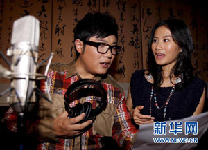 11月28日,作曲者郭竞元(右)、歌手刘飞在广州中唱录音棚商讨如何演唱亚残会歌曲。11月29日,亚组委音乐顾问、会歌征集委员会副秘书长方小聪透露,由作词者李今风、作曲者郭竞元创作、歌手刘飞演唱的《阳光起航》从3首候选歌曲中脱颖而出,正式被确定为首届亚残会会歌。现该歌曲创作团队主要人员已聚集在广州,近期内将正式向公众亮相。新华社记者陈建力摄