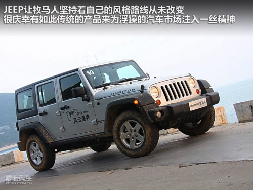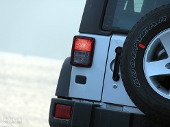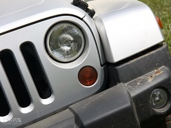 在外观上,2011款牧马人仍恪守并延续了来源于第一代Jeep“Willys Quad(威利斯)”的家族特征:Jeep七孔进气格栅、宽大的前保险杠、外置的发动机舱盖锁扣、外露车门铰链、梯形轮眉等经典元素。