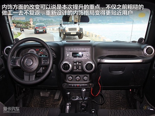 新车看点: 内饰方面的改变可以说是2011款Jeep牧马人提升的重点,不仅之前粗糙的做工一去不复返,重新设计的内饰格局变得更贴近用户。