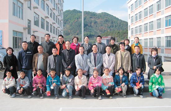 近日,谷来镇中学隆重举行市招投标协会帮困助学捐赠仪式,有关领导和10多位嵊州企业老板参加结对仪式。图为结对企业老板与贫困学生合影留念。 (王炜)