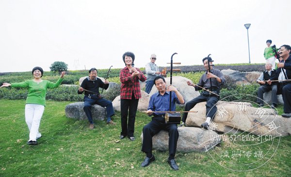城西湿地公园是市政府重点工程,总投资1.3亿元,一期工程已完工,二期工程也在动工兴建。一个集文化、休闲、娱乐于一体的开放式湿地公园基本呈现,成为附近市民休闲娱乐的好场所。图为市民正在改造好的长乐江堤上拉拉唱唱,自娱自乐。