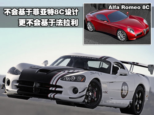 由于之前传出消息称克莱斯勒将会和菲亚特集团合作,我们得到官方证实称新的道奇蝰蛇不会基于任何一款法拉利车型或阿尔法罗密欧车型设计,特别是Alfa Rome 8C Competizione。全新的道奇蝰蛇Viper将会有前所未有的不同外观向世人展现。