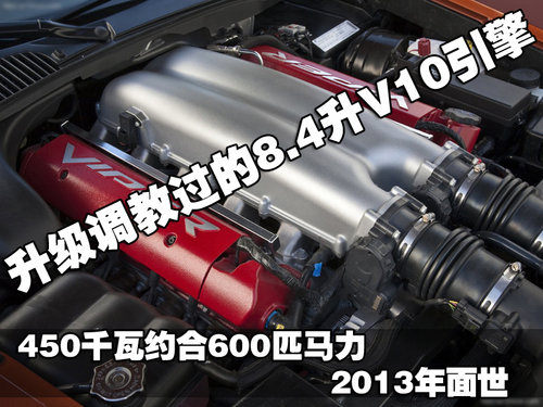 新Viper绝对不会采用Ferrari的引擎,但是可能会搭载一款新的或者是升级调教过的8.4升V10引擎,最大功率可能超过450千瓦约等于600匹马力。全新的蝰蛇研发中会邀菲亚特的工程团队参加,毕竟在车型调教方面,菲亚特拥有着更为成熟的产品开发经验,对于这款于2013年面世的全新超跑,我们公共充满了期待。(曹旭)