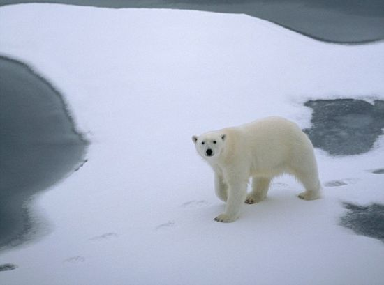北极熊是世界上最大的陆地食肉动物,亦称白熊,堪称游泳好手,但它们常常在海冰的冰面之上进行捕猎和繁殖活动,而近年来,北极海冰面积却在逐年减少。世界野生动物基金会北极熊专家杰夫·约克说:“随着北极冰雪不断融化,北极熊游泳的距离可能会不断增加。”