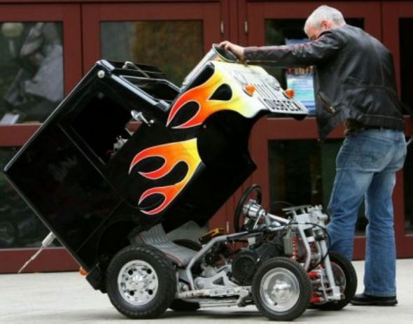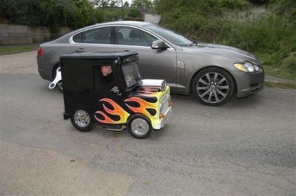 上路之后,瘦小的身躯和袖珍型发动机显然不是其他汽车的对手。但沃特金斯认为,凭借每小时60公里这一最高时速,他的发条迷你车拥有足够力量与体积更大的汽车一较高下。这款迷你车装有安全带,车身两侧印有火焰图案,看上去给人酷酷的感觉。