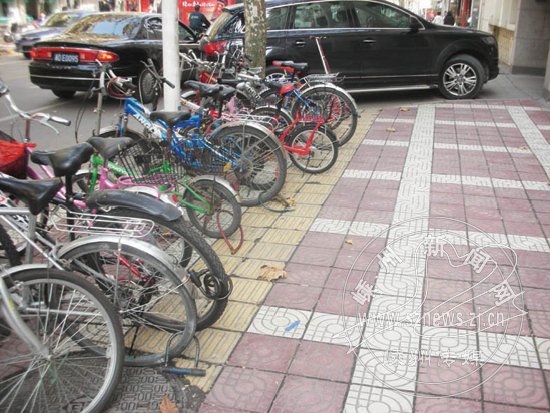 在市区,盲道被占用的现象随处可见。自行车、电动车、轿车甚至有些三轮车、残疾人专用车等,纷纷抢占于盲道之上,让盲道变成了“忙道”。而在一些商店、餐馆门口,有顾客和食客直接把车子停在盲道上,把盲道完全堵住。