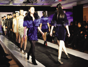 11月27日,嵊州市举行了“中国真丝之都”授牌仪式暨嵊州·中国真丝产品2011流行趋势发布,浙江巴贝集团、浙江宏达制衣有限公司、嵊州达利丝绸和“嵊州领带杯”2010全国丝绸设计大赛金银铜奖的作品,由模特现场展示和发布。图为发布现场。 【来源:天天商报】