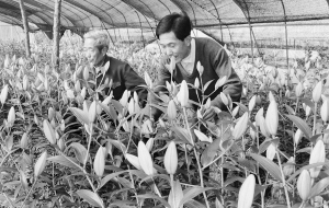 百合是很具观赏性的花卉,经济效益是普通花卉的两倍。嵊州甘霖镇芊思花苑鲜花基地看准这一市场需求,成功引种新品种百合,在冬季上市。图为12月3日,工人正在该鲜花基地采收百合。【来源:天天商报】