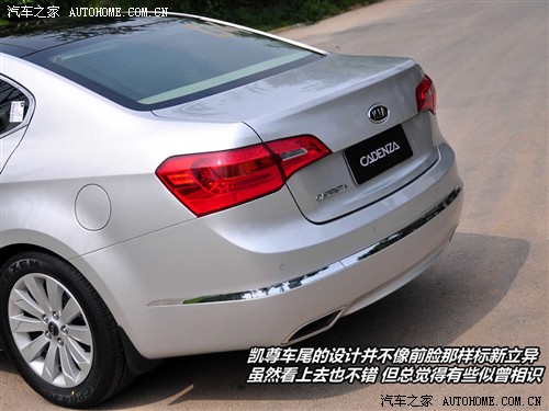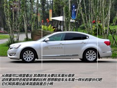 凯尊有着标志性的“虎鼻”中网和X型家族脸谱。保险杠上的X型线条造型突出于前脸,立体的刻画了轮廓。锐利的透镜大灯加之白色的LED灯眉。这些赋予了凯尊独特的个性,一改韩国车中庸、没有特点的印象。充满张力和攻击力的前脸在中大型公务车中非常少见。个性又不失风度的设计是这款车出彩的地方。
