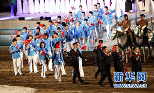 12月8日,在阿曼首都马斯喀特举行的第二届亚洲沙滩运动会开幕式上,中国代表队入场。第二届亚洲沙滩运动会当天在马斯喀特举行开幕式。本届赛会共设14个大项、52个小项。中国101名运动员将参加10个大项中30个小项的比赛。新华社记者才扬摄