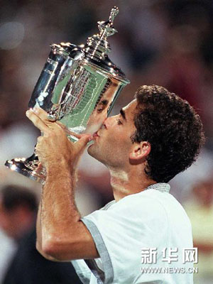 12月8日,据美国媒体报道,美国网球名将桑普拉斯透露在搬家时仓库内存放的职业生涯的奖杯遭到偷窃。13座大满贯赛事奖杯因未存放其中而幸免于难。这是1996年12月8日桑普拉斯在美网男单决赛中击败张德培后亲吻冠军奖杯的资料照片。新华社/法新