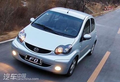 F0外观模仿丰田AYGO的痕迹很重,但不能否认它的外观还是很令人称道的。它的长、宽、高分别达到3460mm、1618mm、1465mm,轴距达到2340mm,搭载的全铝高性能1.0L环保发动机百公里综合油耗为5.2L,升功率达到50KW/L;此外首次在这一级别小车中采用具有独立悬挂系统的副车架。为良好的舒适稳定性奠定了很好的基础。唯一不足的F0内饰做工很一般。