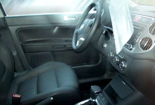 这台国产的CrossGolf测试车的内饰与海外版车型没有区别,其中控面板的设计与Tiguan相似,而方向盘则与高尔夫6相同。谍照中的CrossGolf采用了全黑内饰并加以金属装饰件,所以看起来酷味十足。但仔细观察,我们发现国产CrossGolf中的内饰分为了带金属装饰和不带金属装饰两种版本。由此可以推断,没有金属装饰面板的肯定是低配置的CrossGolf入门车型。