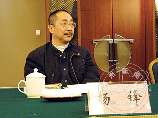 刘益春的评价,激起我的好奇心,杨锋,究竟是怎样一个人?真碰到他时,才发现杨锋其实也很普通,理着平头,戴着一副无框眼镜,脸上一直笑眯眯的,显得有些沉默。尽管他外貌是普通的,但与他谈话之后,会发现不普通的是他的内心。