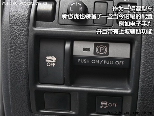 傲虎的内饰与力狮高度相似,是那种大方而不花哨的中型车风格,中控台银色面板虽然为塑料质地,但模仿了拉丝铝合金的感觉,让人看着不显乏味,同时也增加了些许科技感,深浅两种风格也可以让不同喜好的用户按自己的口味选择;傲虎的车内也不乏一些时髦的装备,例如时下流行的电子手刹为全系标配,不过“往下按为拉手刹”的操作习惯与大多数车型相反。