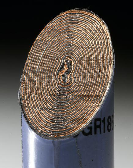 锂电池横截面显示了它的蓄能优势,这使分析人士认为制造充电式交通运输工具是可行的。锂是制造电池的宝贵材料,这是因为它很轻:20世纪90年代生产的电动车General Motors EV1采用的是传统铅酸电池,总重高达3086磅(1400公斤),而新推出的雪佛兰伏特电动车采用的是锂离子电池组,总重不超过400磅(181公斤)。电池越轻,它越容易为车辆提供动力,汽车制造商认为,这种良性循环是电动车得以发展的关键。