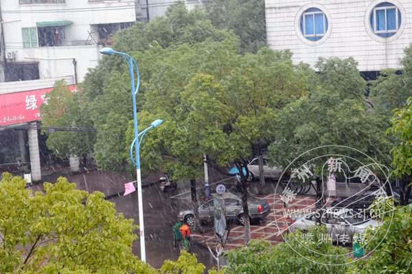 今天上午10时半左右,忽听同事喊了声“下雪了”,抬眼向窗外一望,正在下着雨夹雪。我便手提相机走出门外。