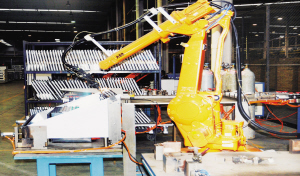 嵊州普田公司近年来投资400万元引进了6台ABB自动焊接“机器人”。这种“机器人”具有焊接速度快、精度高、可靠性强等特点,专业焊接厨具配件,效率超过5个劳动力。据悉,目前该市已有不少厨具企业购置“机器人”为自己“打工”。图为“机器人”正在对厨具配件进行焊接。【来源:天天商报】