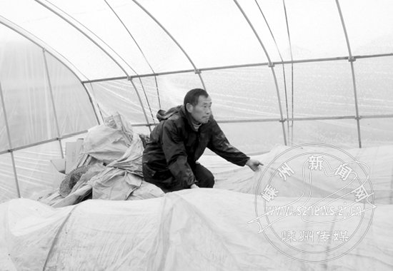 昨日,黄泽蔬菜产销合作社的社员们正在冒着雪往大棚上盖尼龙。据社长张湘华介绍,目前,大棚内芹菜、花菜、波菜等蔬菜已在上市,蒲瓜、茄子、辣椒等蔬菜秧苗也正在生长,如果被雪一冻,就要影响产量。