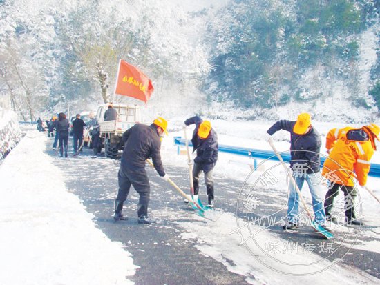 16日早晨5点多钟,市公路管理段谷来公路站全体养护人员就来到S212省道绍甘线,上路撒工业盐和清扫积雪。市交通局、市公路管理段、市运管所等单位的200多名工作人员也都赶到绍甘线开展清扫积雪(如图)。