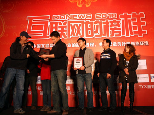 “2010年度互联网行业进步最快”奖项揭晓,图洪波先生为获奖企业颁发“2010年度互联网行业进步最快”奖项。
