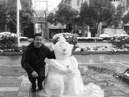 和雪人合个影(吴锡英 摄)