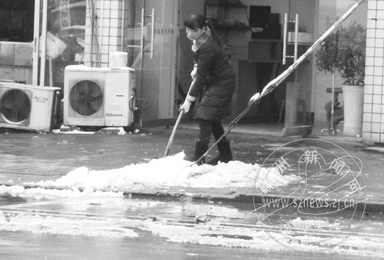 清理店前积雪(钱宁儿 摄)