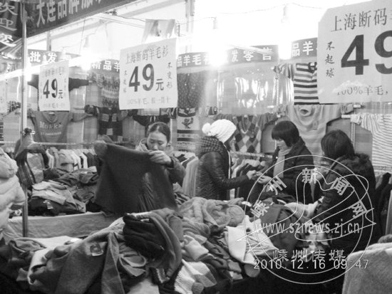 2010首届(嵊州)冬季品牌服装羊绒羊毛皮草大型展销会昨日在市体育馆开展。展会上,200余家企业新款新品全面上市,来自内蒙古鄂尔多斯地区的羊绒羊毛制品,海宁皮革城的裘皮、皮草、羽绒制品吸引了众多消费者的关注,为这个寒冬里送来了深深的暖意。图为消费者正在挑选服装。
