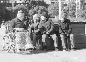 一场冬雪过后,暖融融的太阳出来了,大人和小孩纷纷走出室外晒太阳,同时晒一晒自己的心情。图为记者12月18日上午摄于市文化广场一角。