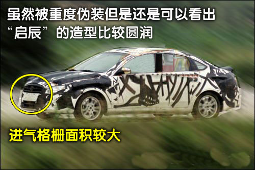 从上图“启辰”重度伪装照片可以看出,“启辰”的造型十分圆润,比较时尚,主要的市场应该属于年轻消费者。“启辰”前进气格栅的面积比较大,轮毂采用五幅十条十的运动轮毂,使得整车动感十足。