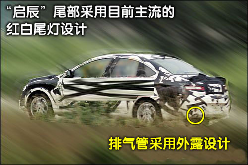 “启辰”的尾部设计比较短小,跟家突出了整车的运动特性。尾灯设计采用了目前主流的红白色设计,排气管为外露设计,预计量产上市时会配上镀铬装饰。