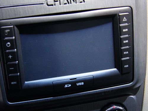 变化最大的地方在于中控区的设计,虽然整体上还是大面积的银色装饰,但整个面板造型已经有了很大的不同,拉丝风格的面板更显质感,黑色的主机区也让整个配色看起来更协调,硕大的“CHANA”LOGO,也显示出长安对于其品牌文化的重视。