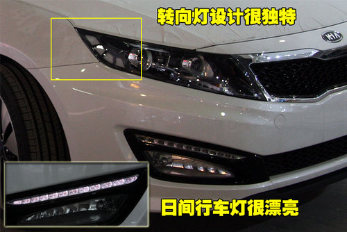 起亚国产K5的前脸设计采用了经典的“X式样“的造型,示宽灯采用时下流行的LED设计,不仅寿命长亮度高,而且对视觉效果的提升也起到积极作用。