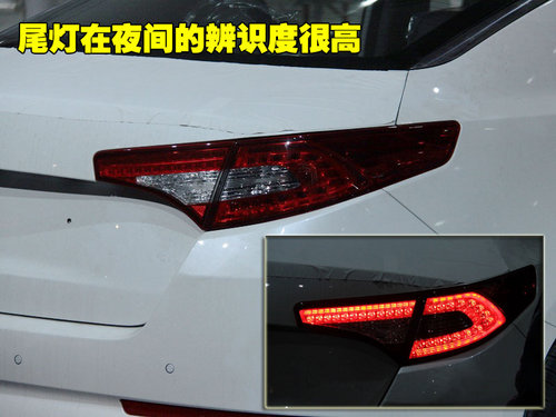 硬朗的尾部设计与车头有了很好的相互呼应,并加入了LED光源式尾灯,使其看上去现代感更加浓重,双色的包围设计突出运动感的一面,而全系车型标配的4点式倒车雷达可提高泊车的安全性。