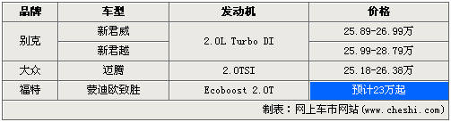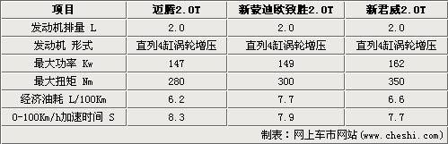 蒙迪欧、迈腾、新君威可谓是在20-25万元售价区间内三款破具竞争优势的车型,如今这三款车型又增加了一个新的共同特点,这就是三款性能强大的2.0T引擎。其中t通用旗下的别克新君威配备的引擎性能最为抢眼,它以81千瓦的升功率和350牛米的扭矩堪称目前量产车型中动力最为强劲的引擎了。而福特为蒙迪欧准备的杀手锏2.0T引擎在参数上也比大众的2.0T引擎更大。但是老百姓买车大都会看中一款车型的保有量,更高保有量的车型意味着技术更为成熟、可靠。在这一点上,大众汽车年产30万台EA111系列引擎的大连发动机厂,便是其品质的最好保障。