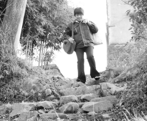 背着邮袋,行走在弯弯曲曲的山路之中,对于杜水香来说是一件家常便饭的事情。譬如去西杜村的大湾自然村投递,必须沿着45度以上陡坡的羊肠小道往下走到底,然后要顺着这样坡度的小路向上攀登到山岗,接着又须再走一个同样坡度一上一下的小石路,这样两个一上一下的山间小道加在一起就有近4公里的路程。