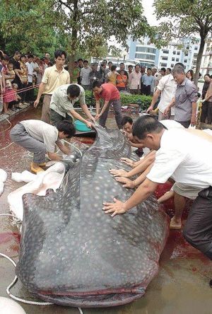 帖子来源于广东一个名为“我们的天空”的休闲社区,发帖时间为2006年6月,记录的是广西北海贝类珊瑚馆对鲸鲨进行解剖,准备制作成两具标本。