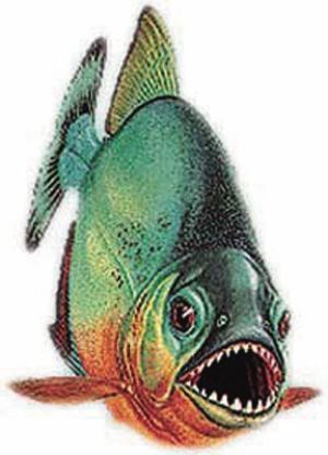 牙齿锐利,下颚发达有刺,以凶猛闻名,一般可达200毫米。在亚马孙河流域,人们过河时,常常要先向河里投掷牛肉等把食人鱼引开。在食人鲳活动最频繁的巴西马把格洛索州,每年约有1200头牛在河中被食人鲳吃掉。一些在水中玩的孩子和洗衣服的妇女不时也会受到食人鱼的攻击。