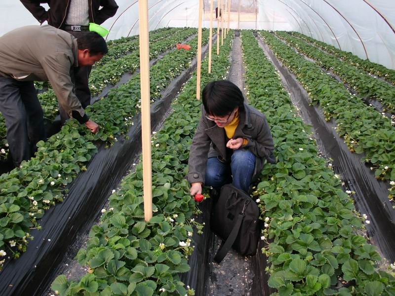 据该村草莓种植大户陈纪兴、单林中等农户介绍:“今年的草莓与往年相比,成熟期推迟10至15天,但长势普遍比较好,果实也比较大,特别是今年来,在农技部门的关心下,在往年普遍种植“丰香”的基础上,今年引进了新品种——“红颊”,此品种树大,产量高,结出的草莓甜中带香,还含有浓郁的奶油味,深受消费者青睐。