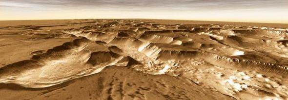 从这张合成图上可以看到夜迷宫(Noctis Labyrinthus )裸露区的高原和山谷,这是利用“火星奥德赛”在2003年到2005年收集的数据合成的。这种崎岖不平的地形是由火星外壳拉伸和碎裂形成的。当断层分开时,地下冰和水会从裂缝涌出,导致地表坍塌。普朗特表示,“火星奥德赛”的最初任务有两个:确定火星表面的组成成分和测量这颗红色行星的放射性,为未来可能进行的人类火星探索任务做准备。