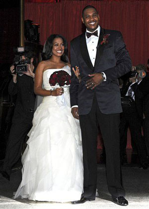 美国当地时间7月10日,NBA掘金队老大卡梅隆-安东尼,和MTV台主持人拉拉巴斯克斯在纽约曼哈顿岛第42街的Cipri-ani餐厅举行婚礼,两位大名人请来300嘉宾到场组祝贺,勒布朗-詹姆斯、奥兰多-布鲁姆、贾斯汀-汀布莱克、斯派克-李这些由两人亲自选择的大腕聚集一堂,当然不能少了他们3岁的儿子基扬。现场被布置成西方婚礼中比较少见的纯红色背景,当然新娘巴斯克斯还是以VERA WANG的白色婚纱为主打。