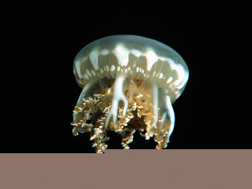 朝天水母又称车轮水母、倒吊水母,它们喜欢口面朝上卧于水底而不是漂浮于水中,伞部直径可达20厘米,生活于岩礁浅水水域和红树林中。分布于西太平洋海域。其水母翼为圆盘状,边缘缺乏触手,水母翼上有车轮状的图案,口脕上有8只触手,呈花边形状,体内有单细胞虫黄藻共生,常是触手向上的,会以水母翼附着,触手向上可以让其中的虫黄藻进行光合作用,从而为水母提供营养物质。朝天水母与其它水母之间的差异在于,总是触手向上,只有在移动的时候,会回复触手向下的方向,但它们不常移动。