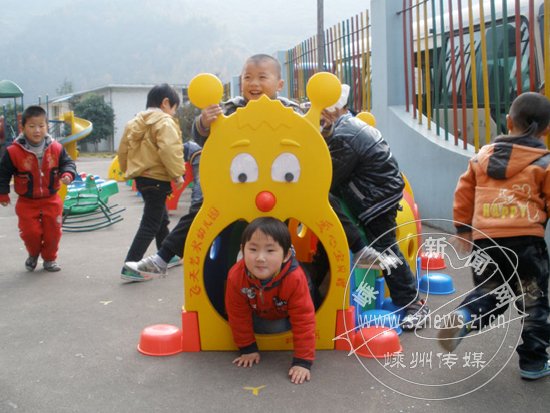 日前,市飞天艺术幼儿园联合嵊州传媒公社搞爱心义卖活动,义卖所得用于为下王镇中心幼儿园与贵门乡中心幼儿购买大型玩具,这些大型玩具为孩子们带去了许多欢乐。瞧,孩子们玩得多开心!图为幼儿正在玩大型玩具“爬爬虫”。