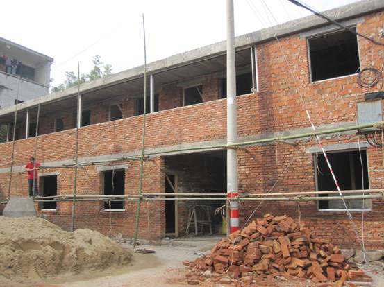 近日,集办公、休闲一体的嶀山村村办公楼已接近尾声,施工人员正在对工程做收尾工作。随着嶀山村的新农村建设,村里的旧办公室已不能满足村级的多项日常工作和活动。因此,在各方条件允许下,村领导班子把修建新办公楼列入今年的村级规划中,并着手建造集办公、休闲娱乐为一体的多功能办公楼。