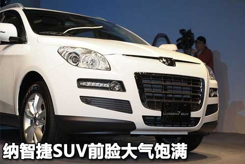 镀铬飞翼徽标和大型水箱护罩,让它展现出与纳智捷 MPV相似的家族面貌。利用多道车身流线与流畅的车顶线条,纳智捷SUV的动感神态也愈趋明确。在4.8米的身长下,纳智捷SUV车侧运用上扬的腰线走势,带出车身的动态感。而流线后掠的窗框造型,也减轻视觉上的沉重感,让纳智捷SUV的运动态势更为强烈。运用丰富的钣件折线,以及流线的车顶与窗框线条,纳智捷SUV也展现出动感逼人的外观态势,消弭庞大车身的笨重感。LED尾灯组则提升车辆后方的辨识和安全性。
