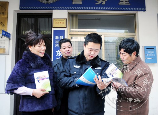 岁末临近, 又到了盗窃案件和诈骗案件的高发期,如何防盗、防诈骗成为市民普遍关心的热点问题。近日,剡湖派出所民警向辖区居民宣传防盗、防诈骗知识,传授防盗、防诈骗的方法和技巧,提前做好防范。图为12月22日民警在东浦社区宣传防盗、防诈骗知识。