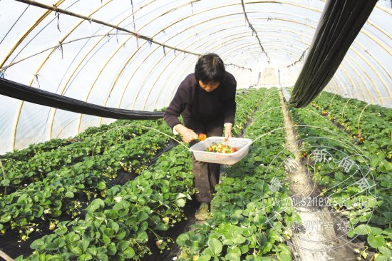 这几天,黄泽镇白泥坎村连片种植的200多亩草莓田开始热闹起来。在那一个个大棚内,农户们提着篮子采摘成熟的草莓,贩销户开着车子前来采购,游客们也结伴前来采摘。据介绍,今年的草莓与往年相比,成熟期推迟了10至15天,但长势普遍比较好,果实也比较大,特别在往年普遍种植“丰香”的基础上,今年引进了新品种——“红颊”,产量高,结出的草莓甜中带香,深受消费者青睐。新上市的草莓每公斤能卖到35元左右。