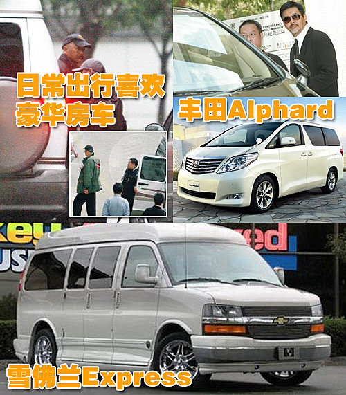 一辆大空间配置豪华的房车就必不可少了这样的舒适座驾,因为周润发要经常出没于条件艰苦的片场。可以让周润发在拍摄之余舒适的休息,对于非常忙碌的显得十分重要。雪佛兰的 Express 改装版房车以及在港澳地区非常盛行的丰田 Alphard 保姆车 ” 成了周润发的最爱。