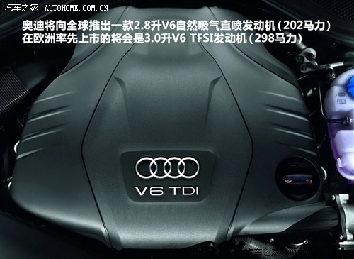 从已知消息来看,奥迪将会向全球推出一款2.8升V6自然吸气发动机,最大功率为202马力;明年在欧洲率先上市的将会是3.0升TFSI发动机,最大功率达到298马力,与之匹配的是奥迪S-Tronic 7速双离合变速箱,这也是在该级别车型中率先引入双离合变速箱,当然Quattro四驱系统的应用也少不了,在随后还会推出S-line版本车型。如果来到国内,入门级车型可能仍然会搭载与现款相同2.0T发动机。