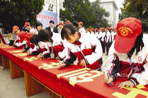 点评:踊跃的场景,专注的签名,表现了志愿者们正积极投入“共建生态嵊州,共享文明成果”行列。